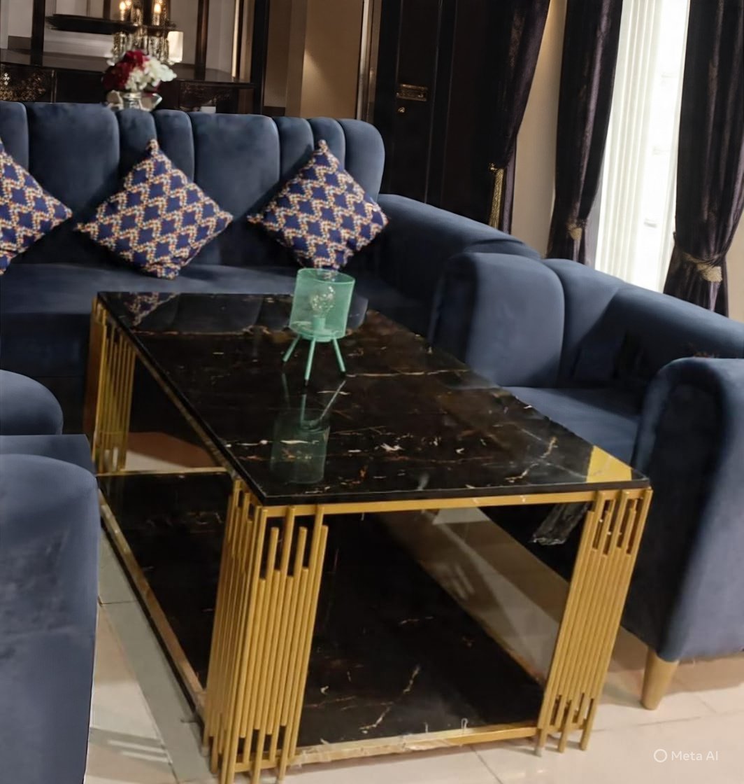 Elegant Coffee Table with Golden Metal Base – a modern, luxurious piece perfect for any living room.