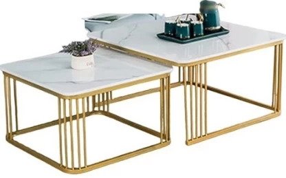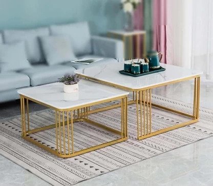Elegant set of two nesting coffee tables featuring UV sheet tops and gold metal frames, perfect for adding a modern, sophisticated touch to your living room