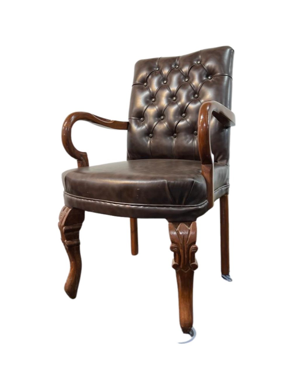 A sophisticated visitor chair with a durable plywood frame, polished wooden legs, and premium leatherette upholstery, offering extreme comfort and a classy look.